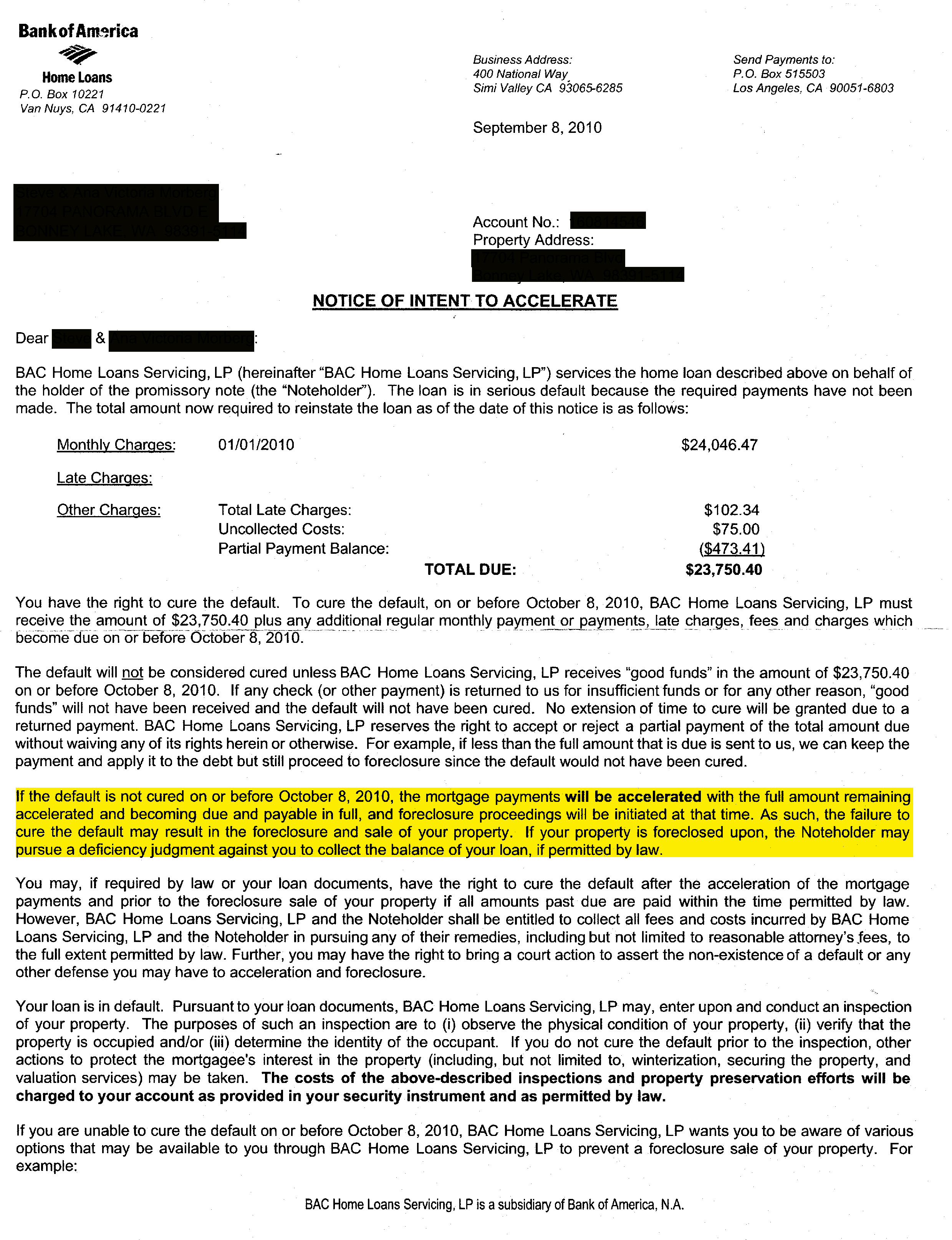 Then they sent me an acceleration of the note letter, I raised hell, started writing letters, and then getting educated. I fell for another “in house” modification and then we were denied in December, all along we were making the trial mod payments still.