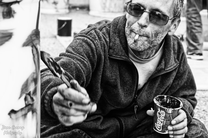 Other days I go to Sneaky Beans coffee house and paint until my eyes grow tired. I’ve been known to paint for twelve hours at a stretch, taking breaks only when I need a cigarette. So I don’t really have a typical day. Some days I just screw off and go rope climbing in the woods. I like to climb difficult trees.