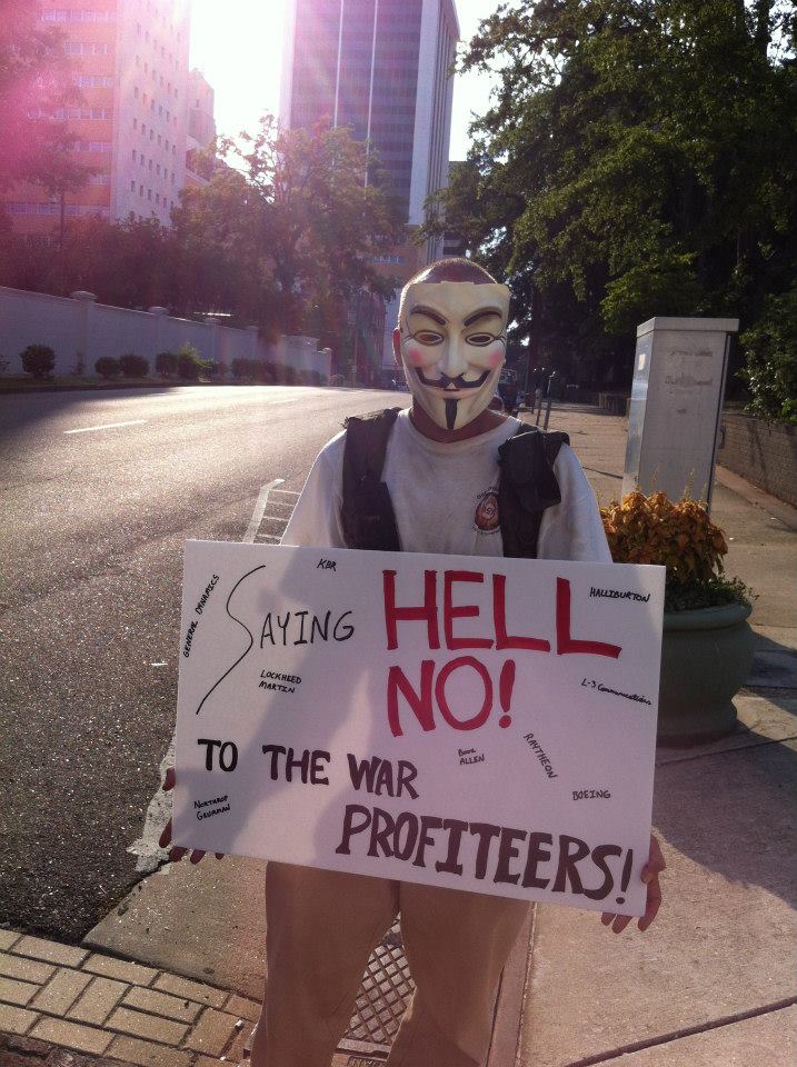 Then, when Occupy began, I was stunned. It was like a miracle. Thousands of people telling their stories, shutting down ports, shutting down bridges, and creating amazing artwork. Somehow I stumbled across Anonymous. I watched some videos. And I realized I wasn’t alone at all. We were going to change the world. And really, I think we will.