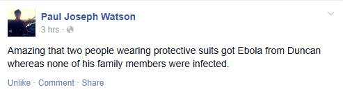 There have been a number of things I’ve seen online today about the anomalies and the true threat—or lack thereof—of Ebola that I wanted to share. First, this comment from Infowars’ Paul Joseph Watson: