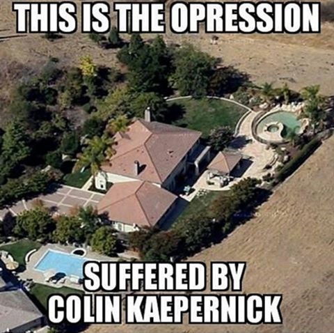 No! The anti-Kaepernickians completely miss the point–he never said HE HIMSELF was oppressed. By sitting during the anthem, he stood NOT for himself, but for others. He stood up by sitting down. He is obviously quite aware of how good he personally has it, which puts him in the position of being able to call attention to the plight of those who aren’t as privileged as he is, which makes his simple act all the more admirable.