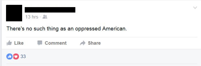 And finally, there was the Facebook friend who posted this single sentence: “There’s no such thing as an oppressed American.”